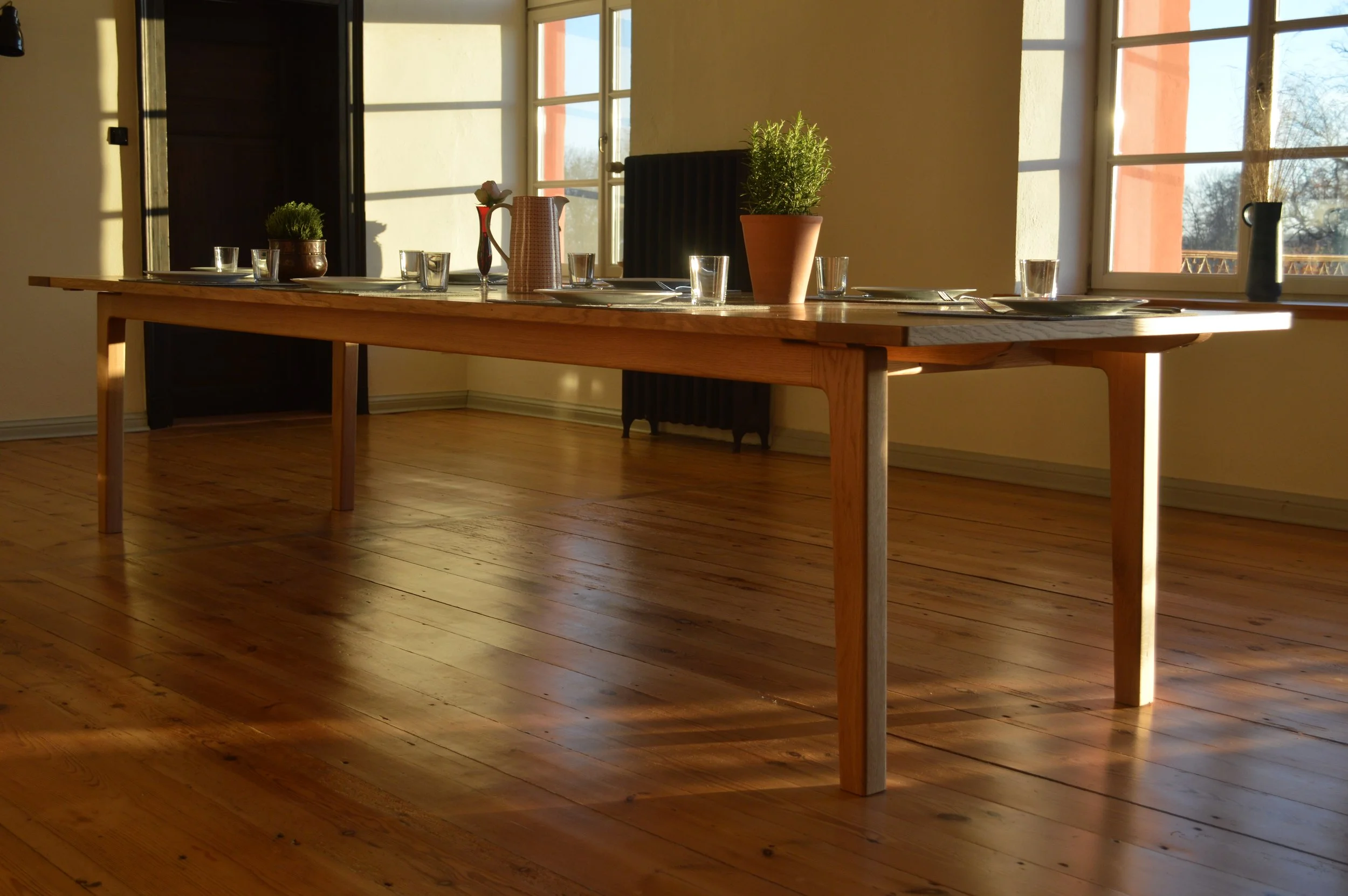Materialien wie Massivholz, Plattenwerkstoffe und Linoleum lassen sich bei uns vielseitig verarbeiten – von Esstischen über maßgeschneiderte Kleiderschränke für Dachschrägen oder Nischen bis hin zu individuell gestalteten Betten. Hast du bereits einen eigenen Entwurf oder brauchst du noch unsere Hilfe? Frag uns gern, wir beraten dich.
